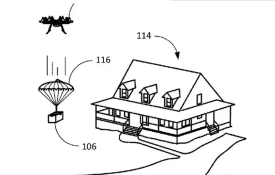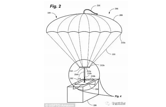 這個方案的核心是給商品裝上“降落傘”,這樣無人機不用落地,就可以實現(xiàn)商品配送,在一定程度上很好地節(jié)省了燃料成本。